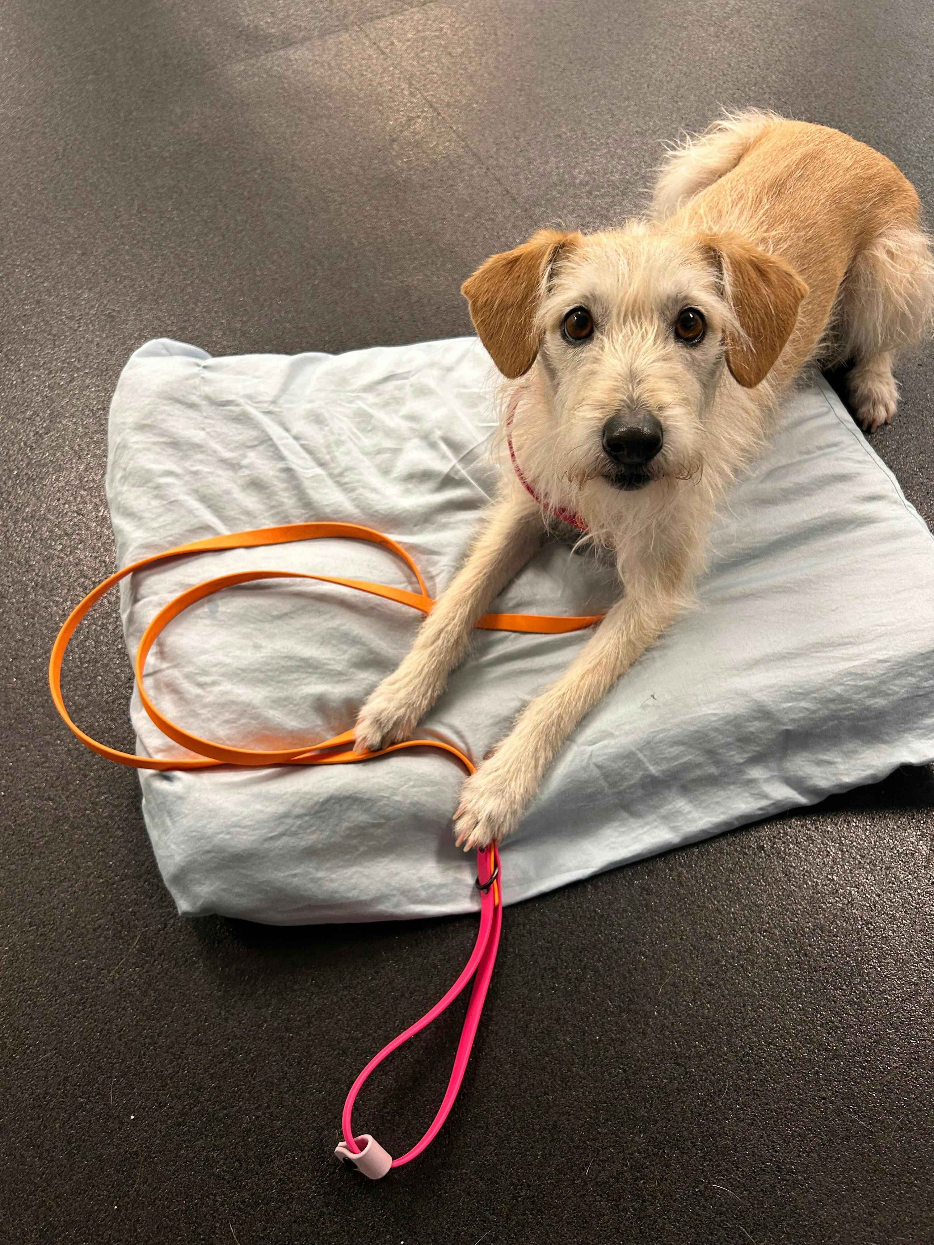 A training-friendly 6 foot French Martingale leash made from BioThane. Built with reinforced Chicago screws, a handy D-ring, and available in two-tone or fully custom colours. Perfect for control without harsh correction. Great for easy removal during dog sports.